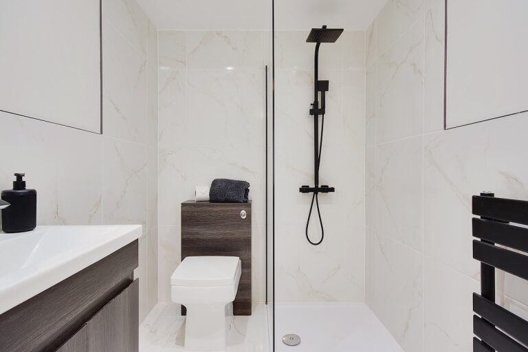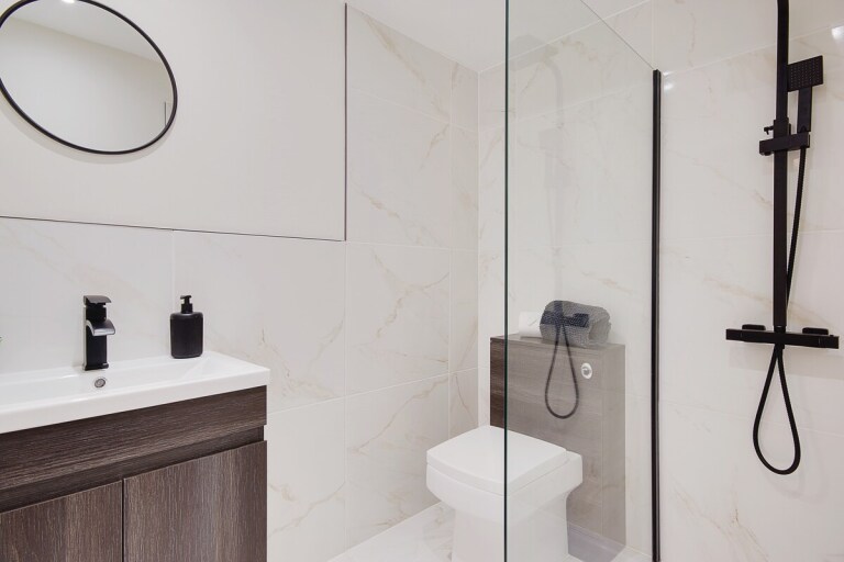 Enjoy a restful night in the plush king-size bed and unwind in the luxury rainfall shower.